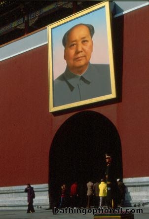 Giant painting of Mao over the gate entrance.
